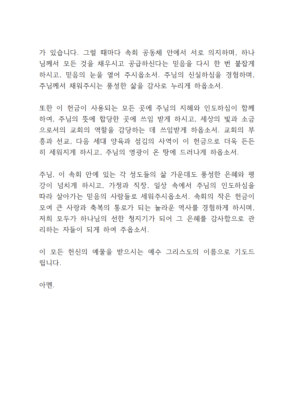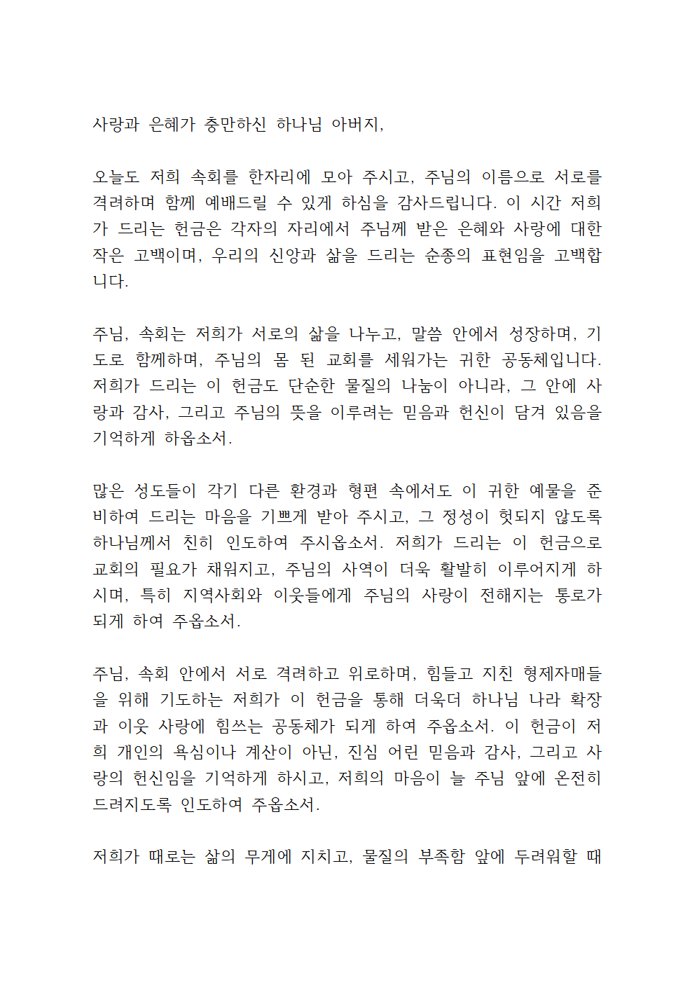 (시작 기도, 헌금 기도, 마침 기도 등)