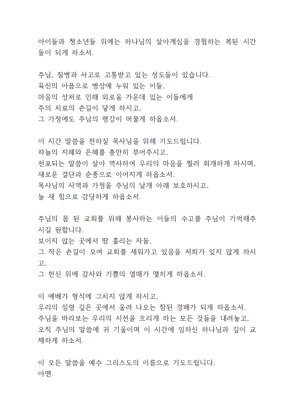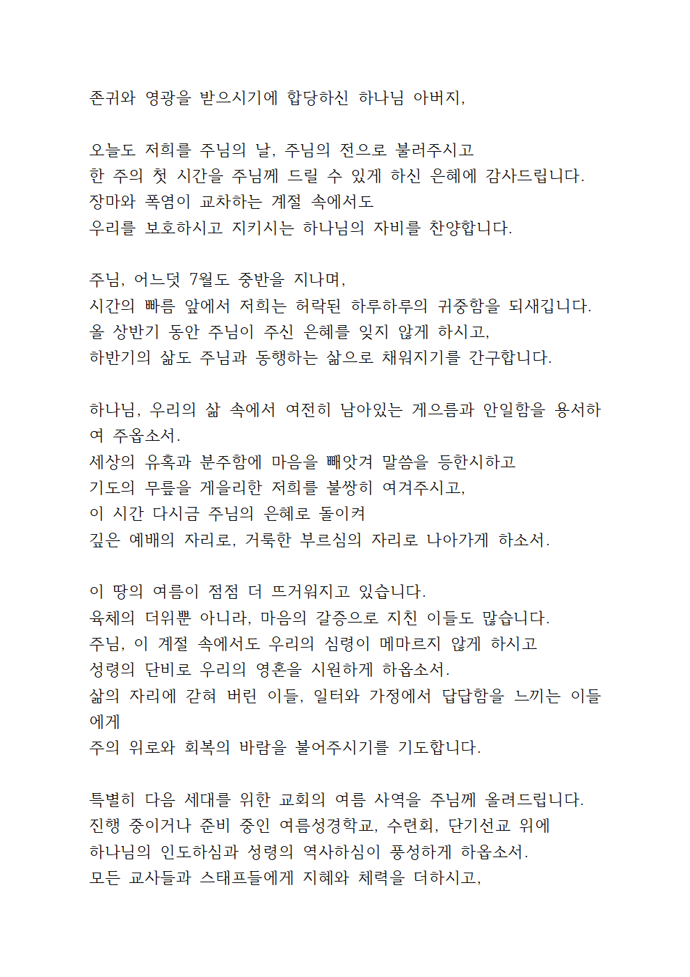 7월 셋째주일 대표기도문 4