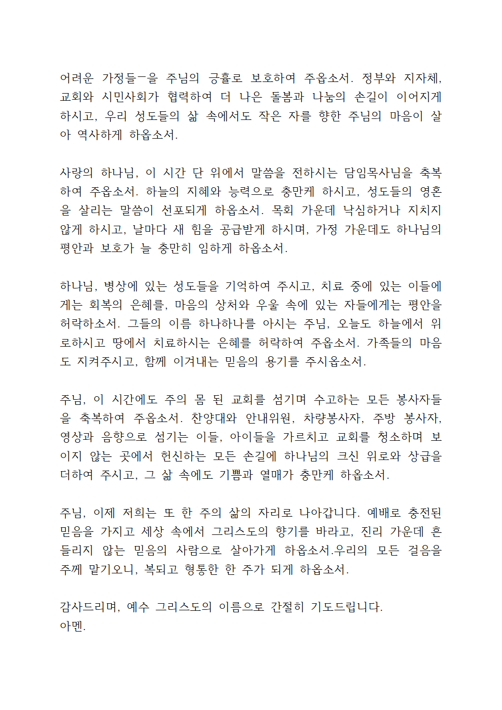 또한 교회의 모든 봉사자들을 위해 기도합니다.