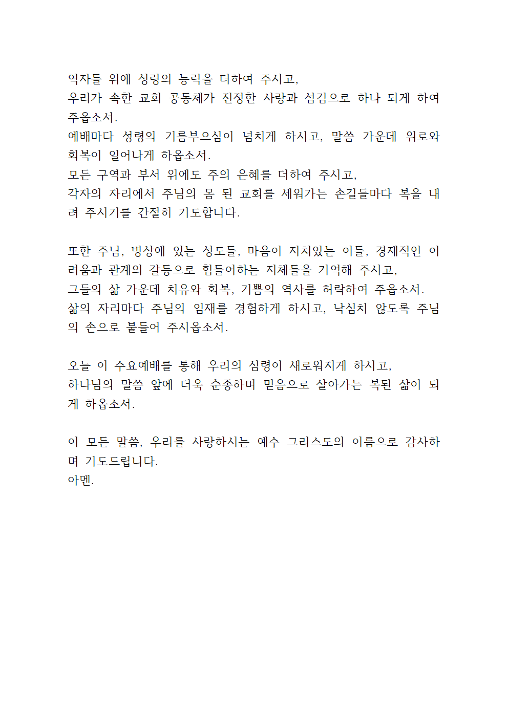 6월 첫주 수요 기도문